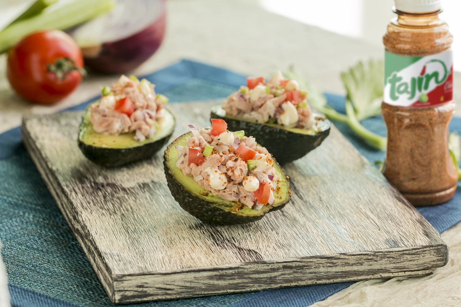 Una vez sazonado, se revuelve y se rellenan las mitades de aguacate.