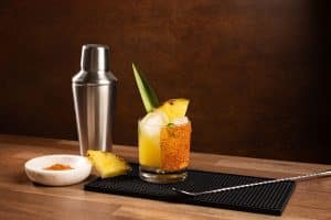 - Fill the prepared glass with fresh ice and strain the mocktail mixture into the glass.