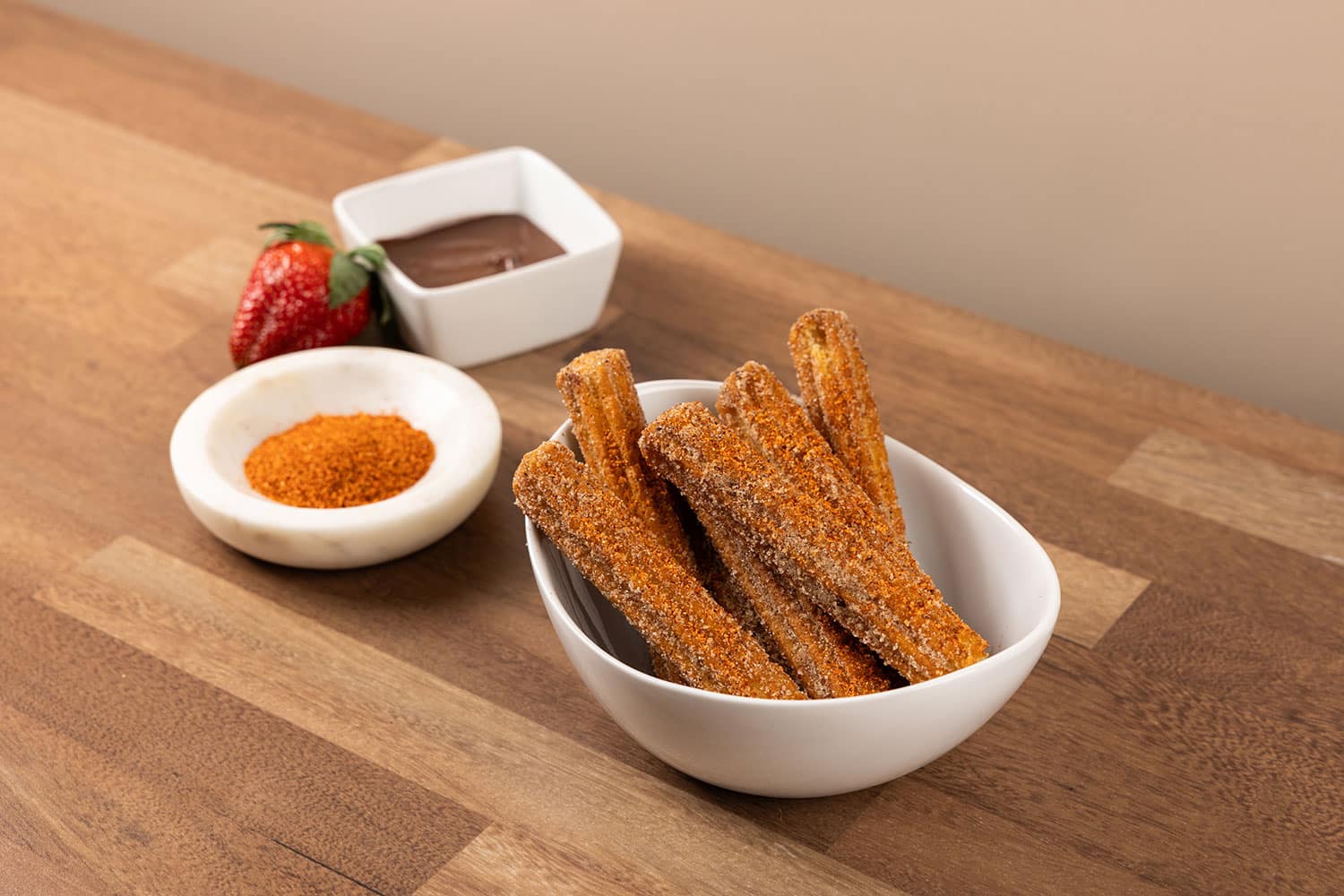 - Mix sugar and Tajín® Twist in a bowl. Coat the churros with the mixture while still warm.