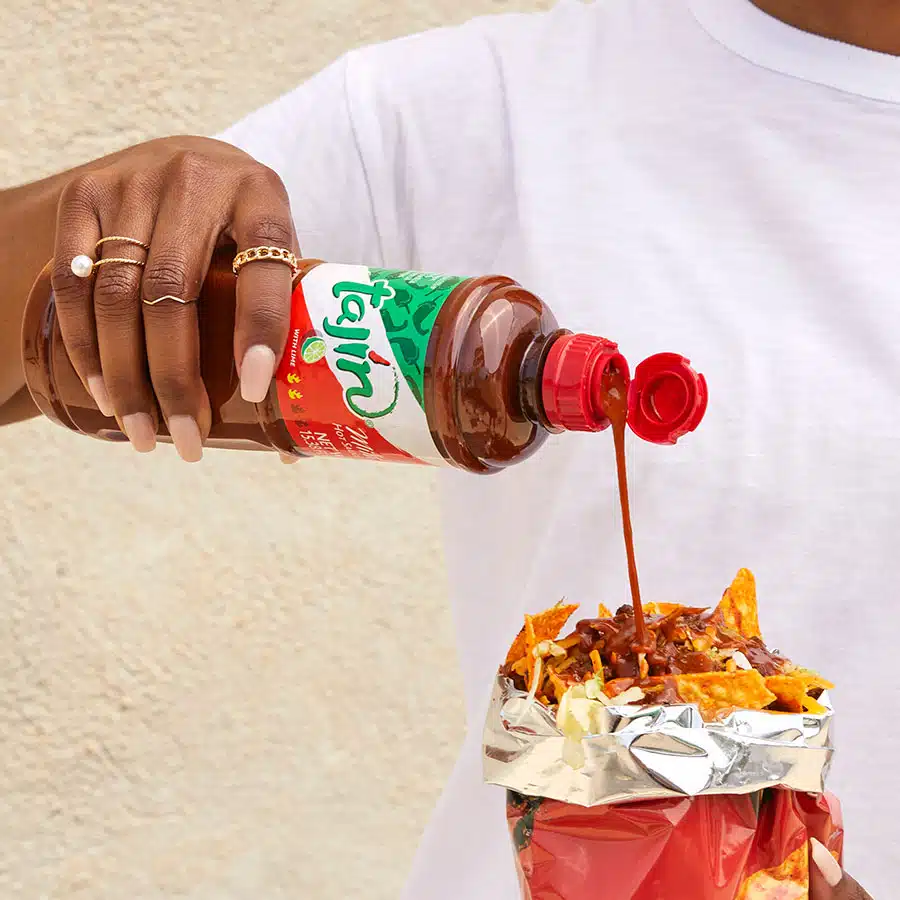 5. Vierte una cantidad generosa de TAJÍN® Chile Lime Sauce al gusto.